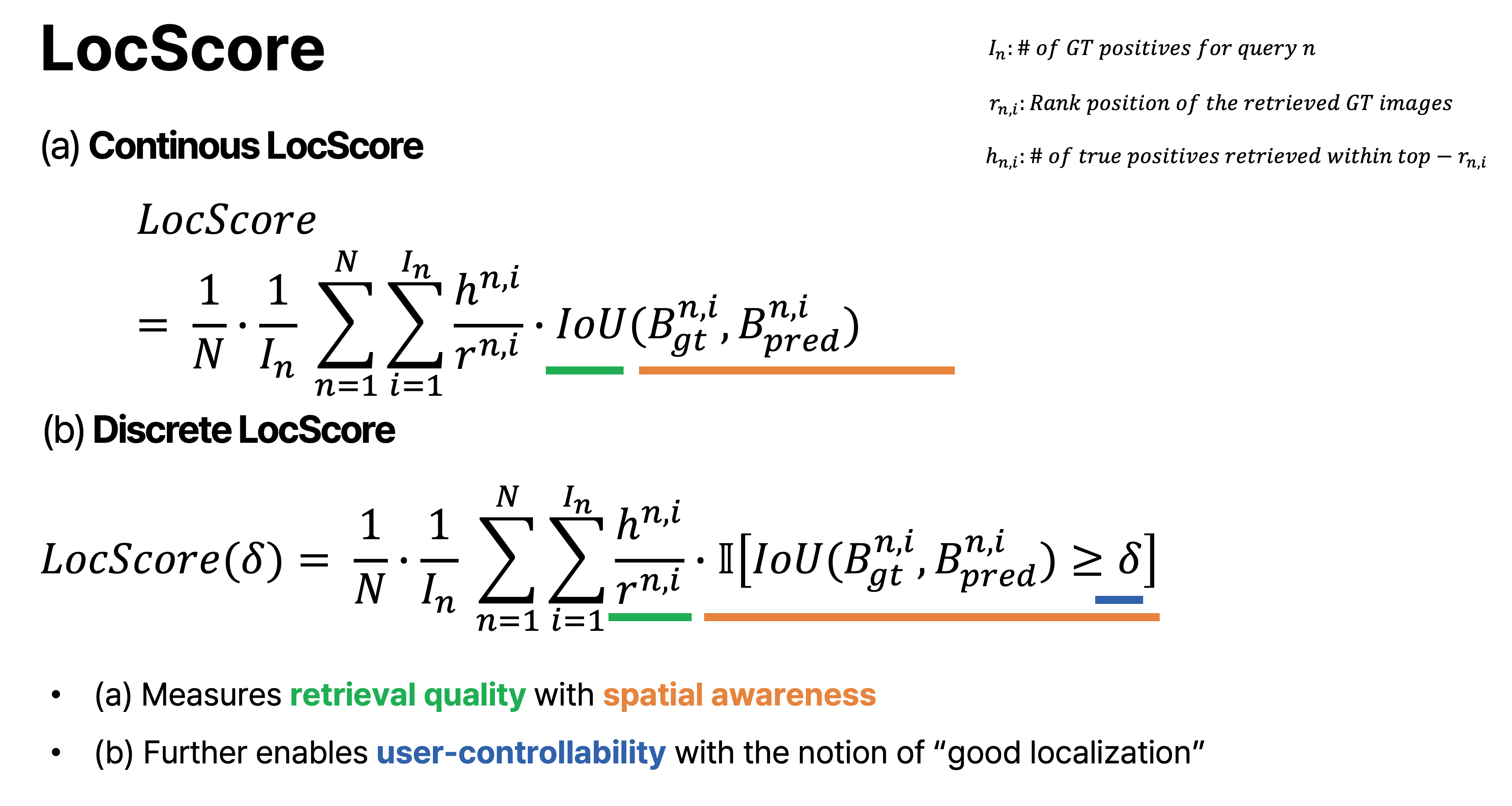 - Localization-aware metric that evaluates both ranking quality and spatial alignment.